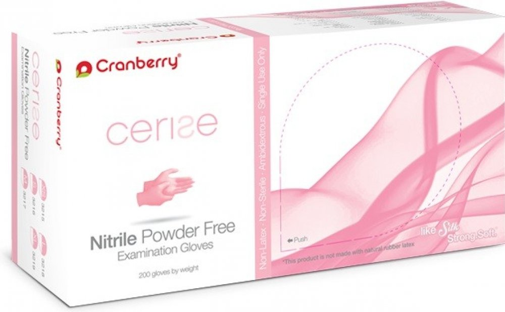 Velmi jemné nitrilové rukavice od Cranberry ve výrazné růžové barvě. Vynikajcí a příjemný materiál, pružnější a odolnější než standardní nitril.