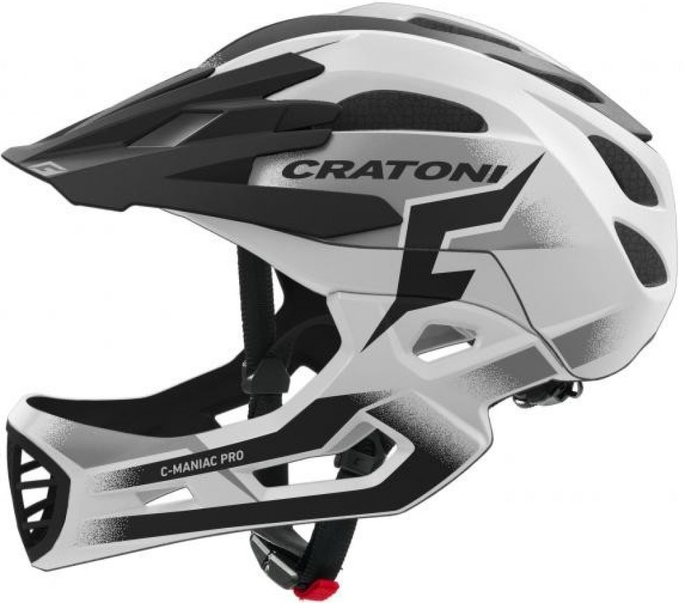 Cratoni C-Maniac Pro s odnímatelným chráničem brady a vyměnitelným kšiltem se hodí pro všechny milovníky nebezpečných trailů a bikeparků. Po sundání chrániče brady pak helmu využijete na vyjížďkách s přáteli i jízdu po městě.