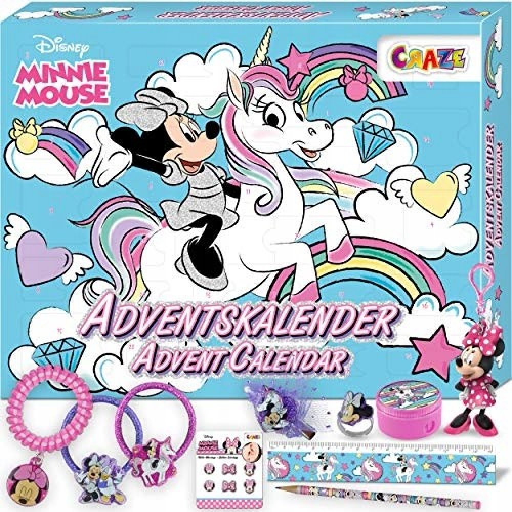 CRAZE Premium 24669 Advent Kids 2020 Kalendář hraček Minnie Mouse pro dívky a chlapce s kreativním obsahem a překvapeními, barevný