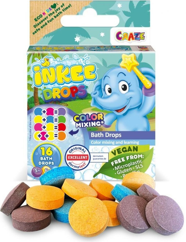 CRAZE INKEE Color Learning Bath Drops barevné tablety do koupele 16 ks