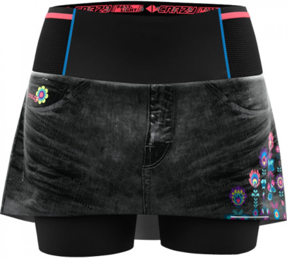 CRAZY SKORT VOLTAGE WOMAN je reprezentativní kousek z dámské kolekce, prostě skutečný „must have“ pro všechny Crazy holky! Vnitřní šortky dlouhé do půlky stehen s mírným kompresním účinkem jsou vyrobeny z italské látky Revolutional Slim. Její mikromasážní efekt výrazně snižuje hromadění kyseliny mléčné. Sukně je vyrobena z velmi lehkého materiálu s laserem řezanými otvory pro maximální prodyšnost....