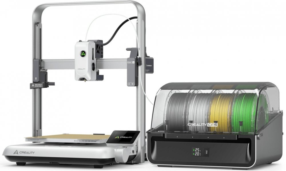 Klíčové vlastnosti 3D tiskárny Creality Ender-3 V4 Combo3D tiskárna Creality Ender-3 V4 Combo dosahuje rychlosti až 500 mm/sPodpora CFS systému umožňuje multicolor tisk až v 16 barváchSenzor vibrací zajišťuje hladký povrch výtiskůSmart Auto Leveling rychle s přesností připraví tiskovou plochuCreality Ender-3 V4 Combo nabízí plně automatické nastavení pro tisk bez složitého seřizováníPevná celolitá konstrukce zajišťuje vyšší stabilitu při každém tiskuDíky tichému provozu kolem 47 dB lze tisknout bez rušení okolíDíky mobilní aplikaci lze odesílat tiskové úlohy i na dálku3D tiskárnu Creality Ender-3 V4 Combo lze ovládat dotykovým displejemMožnost rychlé výměny trysky usnadňuje údržbu i změnu materiáluCreality Ender-3 V4 Combo lze připojit přes USB i Wi-FiTiskárna pracuje spolehlivě s oblíbenými materiály jako ABS/ASA/PA/PETG/PLA/TPUSoučástí 3D tiskárny Creality Ender-3 V4 Combo je CFS jednotka pro vícebarevný 3D tisk 3D tiskárna Creality Ender-3 V4...