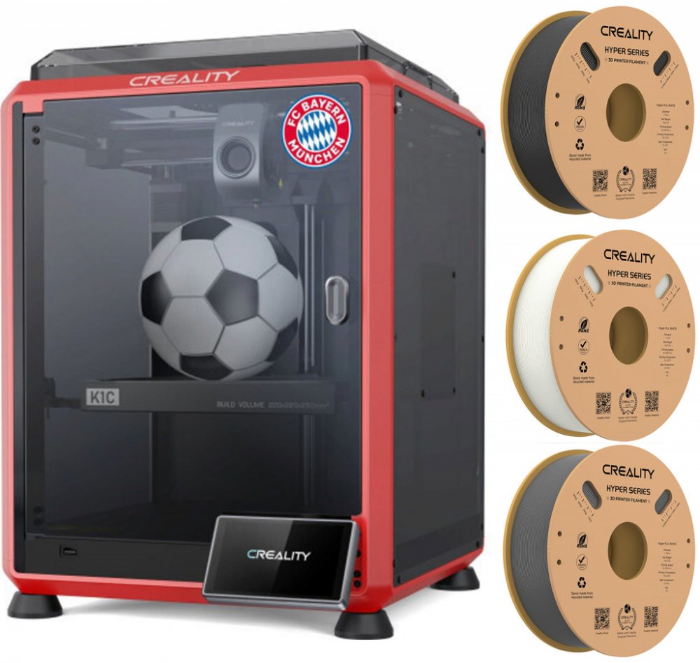 K1C FC Bayern Mnichov od Creality - Limitovaná edice v designu světoznámého fotbalového klubu. Je výkonná a vysokorychlostní 3D tiskárna navržená pro tisk z materiálů vyztužených uhlíkovými vlákny. Tiskárna kombinuje velmi vysokou rychlost a robustní konstrukci s inteligentními funkcemi pro dosažení nejvyšší kvality.