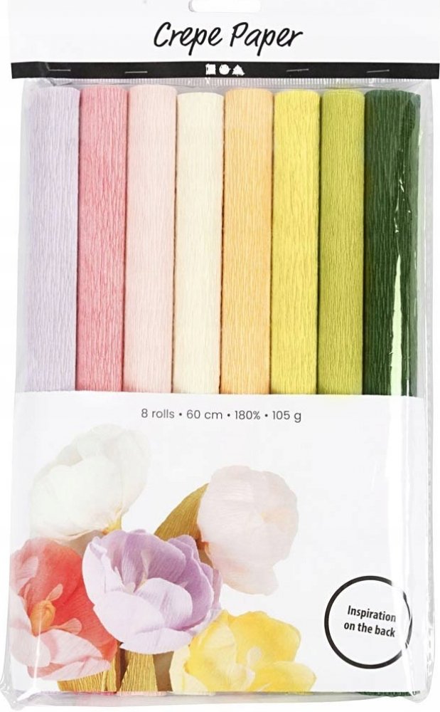 Krepový papír s koeficientem zvlnění 180%, takže je ideální pro výrobu papírových květin, protože jej lze snadno natáhnout a tvarovat bez praskání. Papír má krásný krepovaný povrch a po vytvarování a zpracování neztrácí tvar.