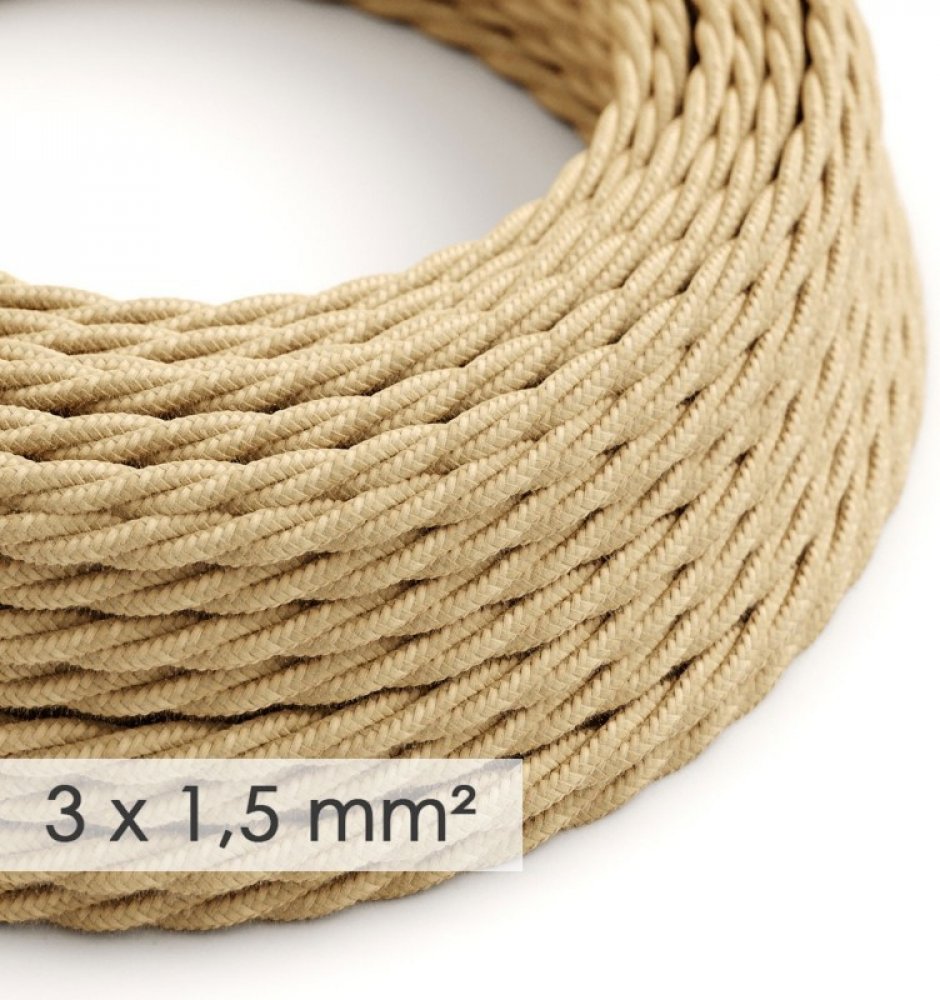 Potřebujete více elektřiny? Tento textilní elektrický kabel se širším průměrem 3x1,5 - spirálový kabel potažený jutou TN06, je ideální pro vytvoření vlastní prodlužovačky, pro rozvody elektrické sítě nebo prostě všude kde chcete přivést elektřinu vašim elektrickým zařízením. Elektrický kabel má dvojí izolaci z ohebného PVC. Všechny kabely Creative-Cables jsou 100% vyráběny v Itálii s IMQ-Har certi...