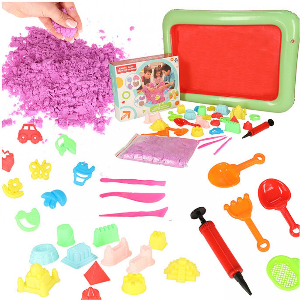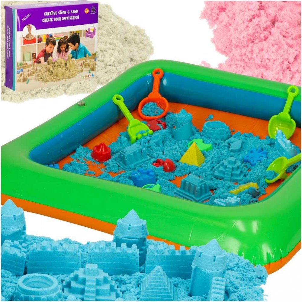 Kinetický písek je ideální alternativou ke klasickému písku. Díky své lepivosti je skvělý pro tvorbu různých figur a staveb. Součástí tohoto zábavného setu je nafukovací pískoviště, kde děti mohou uplatnit svou fantazii a tvořivost. Sada obsahuje 1 kg písku a 18 různých forem, spolu se sítkem, lopatkou, hrabičkami a modelovacími tyčinkami. Tento interaktivní set podporuje manuální dovednosti, krea...