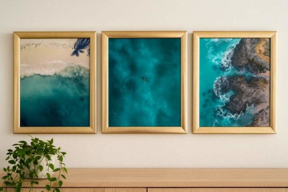 Doplňte svůj interiér nádechem klidného mořského prostředí s exkluzivní sadou tří dekorativních obrazů od Creative Home. S motivem „Moře“ v jemných odstínech přináší do prostoru pocit harmonie a elegantní proměnu pro váš domov nebo kancelář.