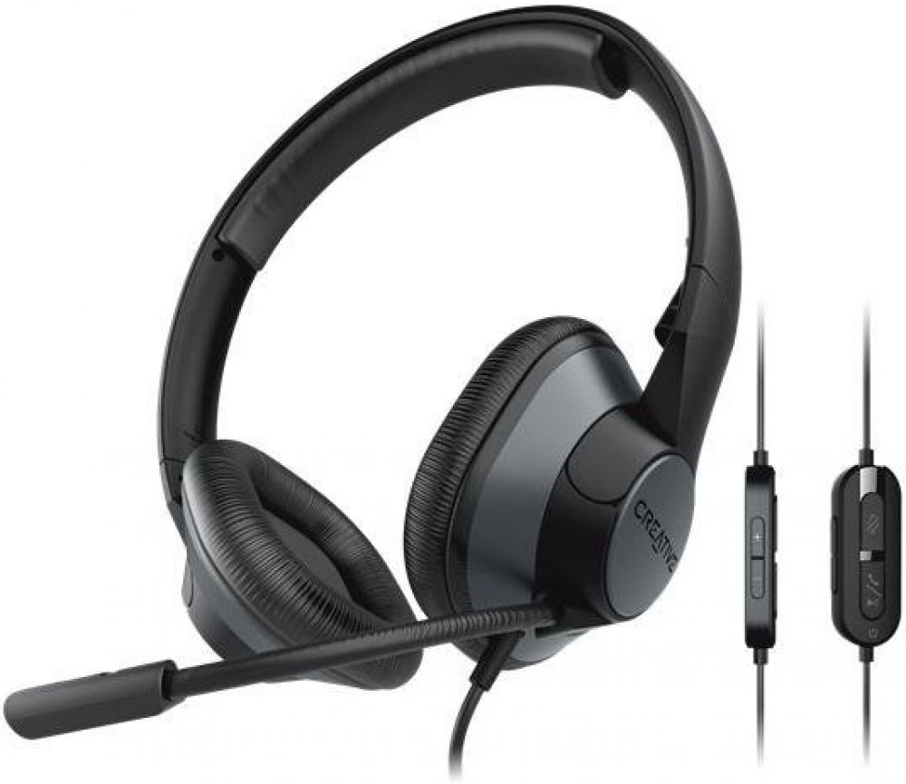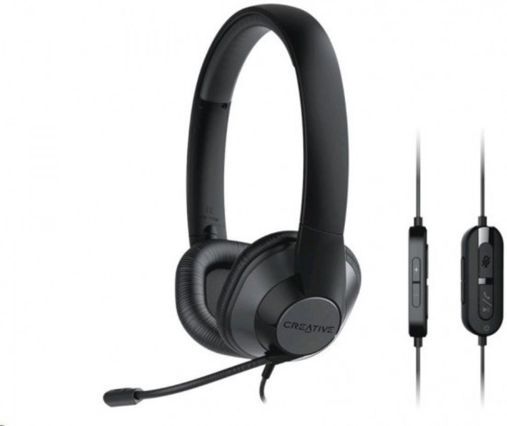 Creative HS-720 V2 má vše pro pracovní telefonáty: mikrofon s potlačením šumu, odezvu mikrofonu pro kontrolu hlasitosti a integrované dálkové ovládání s tlačítkem ztlumení mikrofonu a příjmu hovoru.