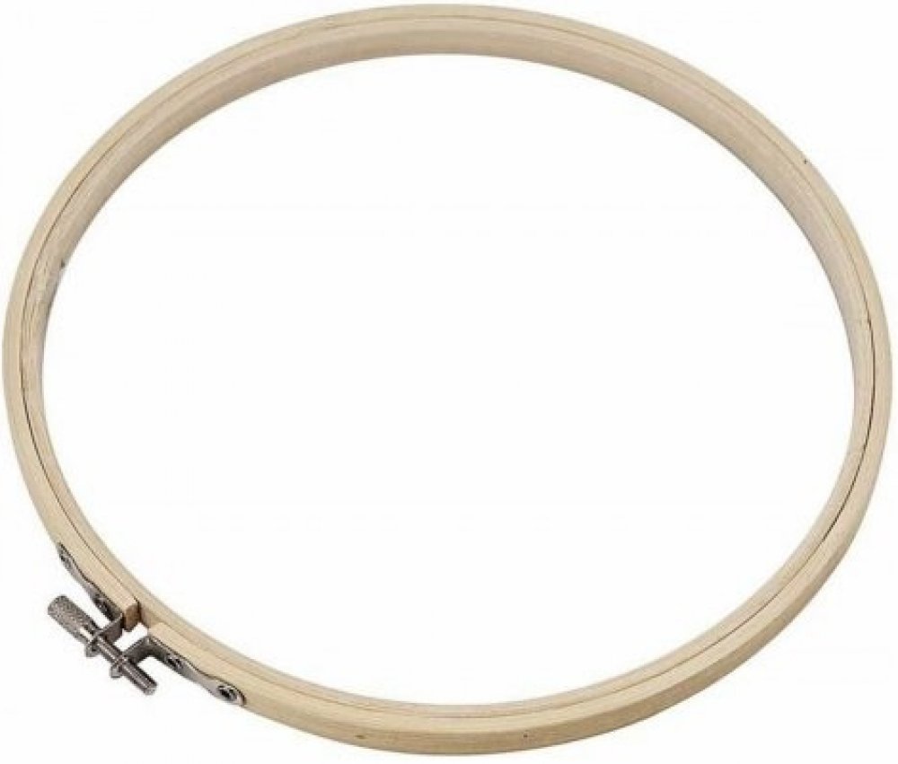 Kulatý dřevěný vyšívací rám s kovovou sponou. Může být použit jako nástroj pro roztažení a připevnění tkaniny, která má být vyšívána / malována,nebo jako rám pro zobrazení. Nástroj, slouží k udržení napnutí celého kusu látky při práci.