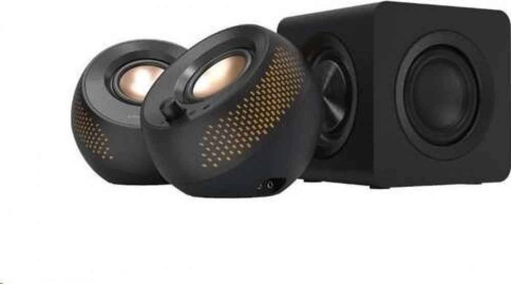 Počítačové reproduktory 2.0 s přizpůsobitelným osvětlením RGB a rozhraním USB-C.