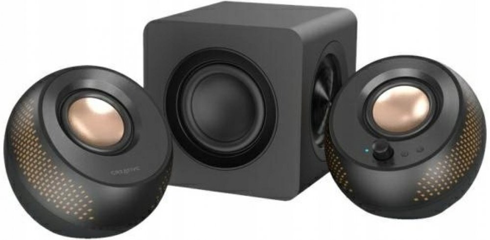 Počítačové reproduktory s konektorem USB-C 2.1, Subwooferem a přizpůsobitelným osvětlením RGB S reproduktory Creative Pebble X Plus dosáhnete atraktivní rovnováhy mezi výkonem a vzhledem, hlavně vás však naprosto okouzlí bohatý zvuk s hlubokými basy, o které se stará zcela nově navržený kompaktní subwoofer a vylepšené 2,75” měniče vyladěné přesně na míru, doplněné o vizuální vylepšení v podobě přizpůsobitelného osvětlení RGB. Reproduktor Creative Pebble X Plus, který se připojuje k naší