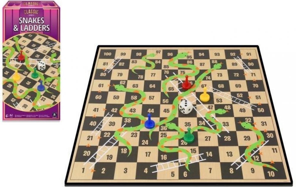 Hadi a žebříky – desková hra pro celou rodinu, která se během let stala populární po celém světě.