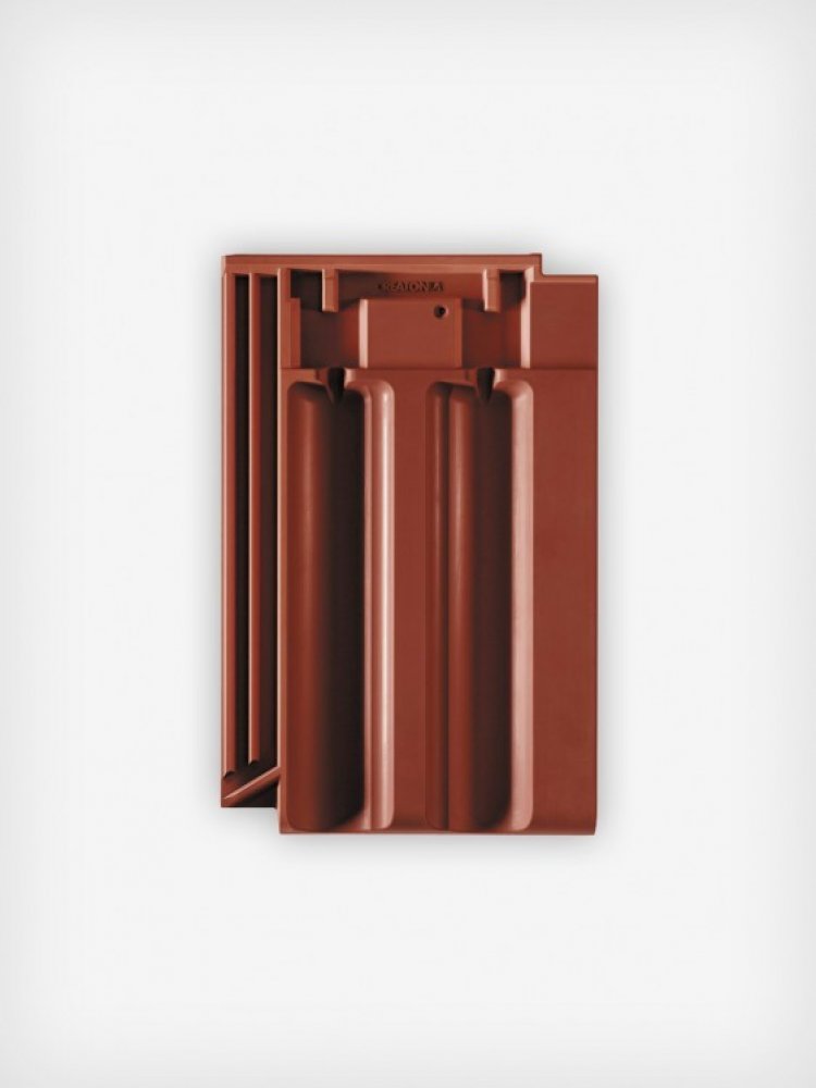 Klasický tvar tašky navazuje na tradiční drážkovou tašku. Velký formát cca 325 x 502 mm a spotřeba od