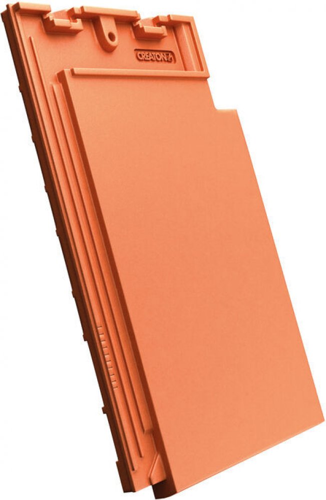 Pálená taška SIMPLA je moderní plochá taška o velikosti XL. Rozměry cca 300 x 500 mm a možnost posunu v drážkách až 28 mm umožňují dosažení minimální spotřeby na působivé úrovni cca 10,4 ks/m². Tím se zkracuje doba pokládky a náklady na zhotovení střechy jsou nižší. Velkoformátová SIMPLA se vyznačuje jedinečným designem a nejlepšími užitkovými parametry, které jsou typické pro pálené tašky nové generace. Vyznačuje se nejvyšší kvalitou a trvanlivostí. Speciální konstrukce drážek zajišťuje optimální proudění vzduchu pod krytinou. Boční drážka má výjimečně zvýrazněnou dvojitou prohlubeň, která zajišťuje perfektní odvod vody i za silného větru. Schůdkovité zakrytí spolehlivě chrání před průnikem vody a nečistot. Systém spodních žeber a můstků zvyšuje pevnost celé střechy. Díky rozvinutým drážkám ji lze s použitím vhodné membrány značky CREATON pokládat na plochy se sklonem již od 10°.