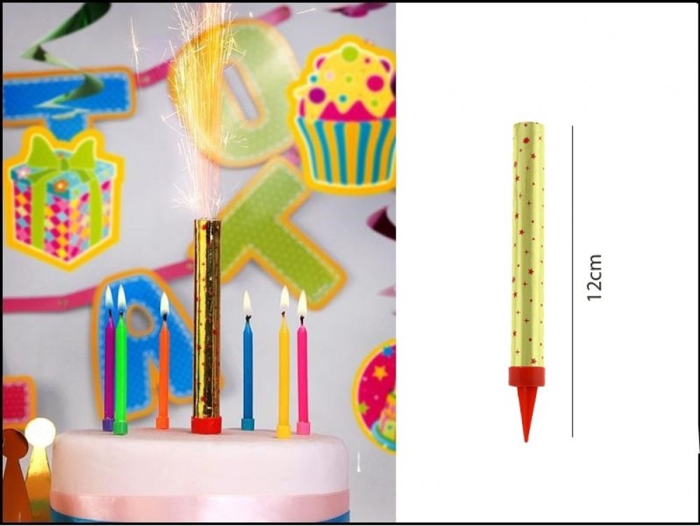 Dortové fontány Crescom Kft svým veselým designem nesmí chybět na žádné oslavě. Zlatá barva ozdobena červenými roztroušenými hvězdičkami rozveselí a krásně doplní narozeninové kouzlo každé dortu. Cca 42 sekund trvající efekt mini ohňostroje rozzáří nejen dětskou tvář, ale zaručeně vykouzlí úsměv i na tvářích dospělých účastníků.