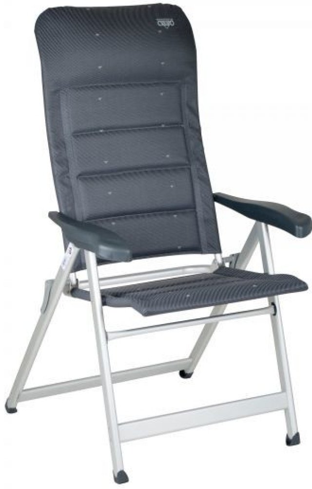 Čalouněné kempingové křeslo Crespo Deluxe AL/237-DLKempingové křeslo Crespo Deluxe AL/237-DL nabízí maximální pohodlí – a to především díky velmi komfortnímu čalounění. Výplň potahu je vyrobena z prodyšné polyesterové pěny.Ergonomické opěradlo křesla Crespo Deluxe umožňuje nastavení polohy až do 7 různých poloh. Křeslo je velmi stabilní díky zesílenému rámu z hliníku. Protiskluzové nožičky ručí za vysokou stabilitu.Klíčové vlastnosti kempingového křesla Crespo Deluxe AL/237-DL:Potah křesla je rychleschnoucí a snadno omyvatelný.Součástí je ergonomické sedmipolohové nastavitelné opěradlo s integrovanou opěrkou hlavy.Křeslo Crespo je díky zesílenému hliníkovému rámu velmi stabilní a zároveň lehké.Max. nosnost až 140 kg.Parametry kempingového křesla Crespo Deluxe AL/237-DL:barva: antracitmateriál konstrukce: hliníkmateriál potahu: 40% PES polyester, 60% PVC polyvinylchloridmaximální nosnost: 140 kgvýška sedáku: 49 cmrozměry (Š × V × H): 67 × 119 × 77 cmrozměry balení: 117 × 69 × 10 cmhmotnost: 4,9 kg