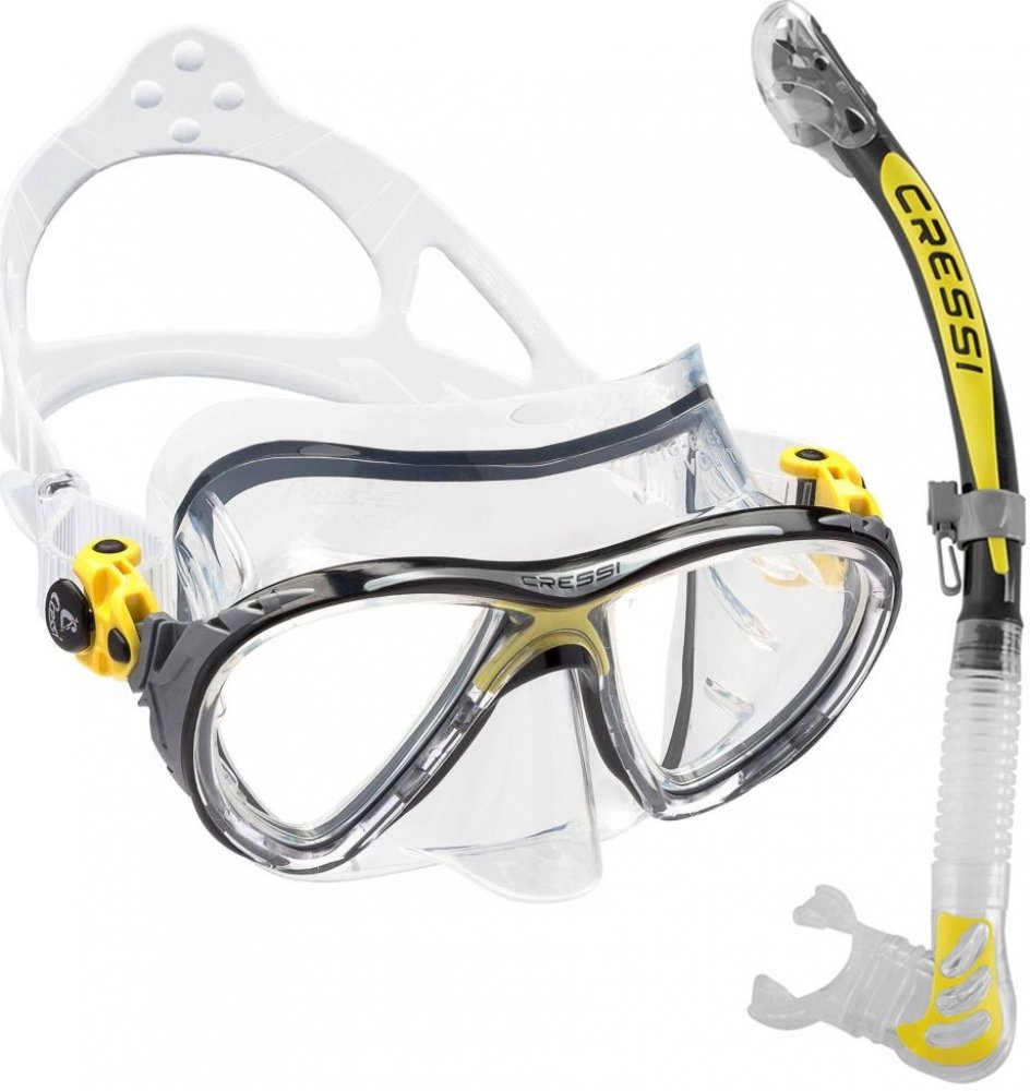 Set na šnorchlování BIG EYES EVOLUTION ALPHAZnamenitý design a nejvyšší kvalita. Perfektně těsnící maska z nového High Seal silikonu Big Eyes Evolution v kombinaci se 100% suchým šnorchlem Alpha Ultra Dry tvoří jednu z nejlepších šnorchlovacích sad na trhu. Součástí balení je také praktická taška na uskladnění.Maska BIG EYES EVOLUTIONMaska Big Eyes Evolution se vyznačuje absolutně perfektními těsnícími vlastnostmi díky speciální silikonové lícnice, vyrobené z mimořádně měkkého, přiléhavého, pro kůži velmi příjemného a komfortního silikonu nejnovější generace HIG Seal. Díky takto specificky propracovanému silikonovému těsnění už nebude problém s utěsněním téměř všech typů obličeje. Maska se dokáže díky výborným těsnicím vlastnostem silikonové lícnice skvělým způsobem přilnout k obličeji doslova nebývalým způsobem a nezanechává žádné stopy na kůži i při dlouhodobém používání.Otočné přezkyVýborná manipulace do všech stran. Přezky jsou spojeny s rámem pomocí pružného a velmi odolného elastomeru, který po nastavení řemínku zorníky přibližuje k očím pro ještě lepší zorné pole vidění.Zorné pole viděníMaska se speciálním zorníkem, díky kterému se otvírá potápěči o 30% širší výhled do stran než u masek se standardním úhlem uložení zorníku. Skla jsou nakloněny, ale zároveň umožňují nelomené vidění - toto provedení je originální patent od firmy Cressi. Samotné skla zorníků jsou konstruovány tak, aby i při extrémně dlouhém potápění nebyly oči příliš namáhané. Pro perfektní vidění je důležité maximálně utěsnění obličeje, což v tomhle případě zaručuje těsnicí okraj vyrobený z hypoalergeního silikonu po celém obvodu masky. Řemínek je vyroben také z tekutého silikonu a je velmi snadno, jednoduše a rychle nastavitelný díky speciálním otočným přezkám.Už žádné stopy na tváři po delším použitíPříjemně měkký High Seal silikon je zároveň i příjemný a komfortní pro kůži a ani po delším použití ve vodním prostředí nezanechává na tváři žádné otisky.SpecifikaceHypoalergenní silikon použitý na lícnice potápěčských masek Cressi zaručuje dokonalou přilnavost a hygieničnostČerný silikonMá nejširší výhled ze všech masek s menším vnitřním objememPatentní přezky umožňují správně nastavit délku silikonového řemínkuTemperované skloRozměry: 163 x 89 mmHmotnost: 200 gMožnosť vloženia optických skiel -1 až -10 dioptriíŠnorchl ALPHA ULTRA DRYSuchá špička se za posledních pár let stála v šnorchlování zlatým standardem. Lidé chtějí šnorchly se 100% suchou špičkou, která se pod vodní hladinou uzavře a do nitra trubice nepustí žádnou vodu. Výsledný komfort je vynikající a statisticky se z kategorie šnorchly prodává až 90% takzvaných suchých šnorchlů. Není však šnorchl jako šnorchl a některé modely od různých výrobců nejsou zrovna nejspolehlivější, šnorchl Alpha Ultra Dry k ním rozhodně nepatří a naopak je jedním z nejspolehlivějších suchých šnorchlů na trhuSuchá klapkaKdyž se šnorchl ponoří pod vodní hladinu, klapka se tlakem vody automaticky uzavře a do nitra trubice nepropustí žádnou vodu. Výsledkem je 100% suché dýchací prostředí a skvělý komfort.Náustekje vyroben z hypoalergenního silikonu. Je příjemný, měkký, ale zároveň odolný a hlavně ergonomický.Ohebný kloubNebo jinak wrapová hadice pomáhá snižovat tlak vody vytvořený pohybem šnorchlistu a při dlouhém šnorchlování výrazným způsobem redukuje únavu.Posuvný, nastavitelný, odepínací klipSamozřejmostí je výškové nastavení posuvního klipu, ale hlavně můžete klip kdykoliv tlačítkem odepnout od šnorchlu a jít si zaplavat pouze s maskou, Zpětné připnutí držáku k šnorchlu je velice snadné.Maximální ohebnostMimořádně ohebný a flexibilný materiál je zároveň i ochranou proti poškození materiálu a hlavně proti nárazům.
