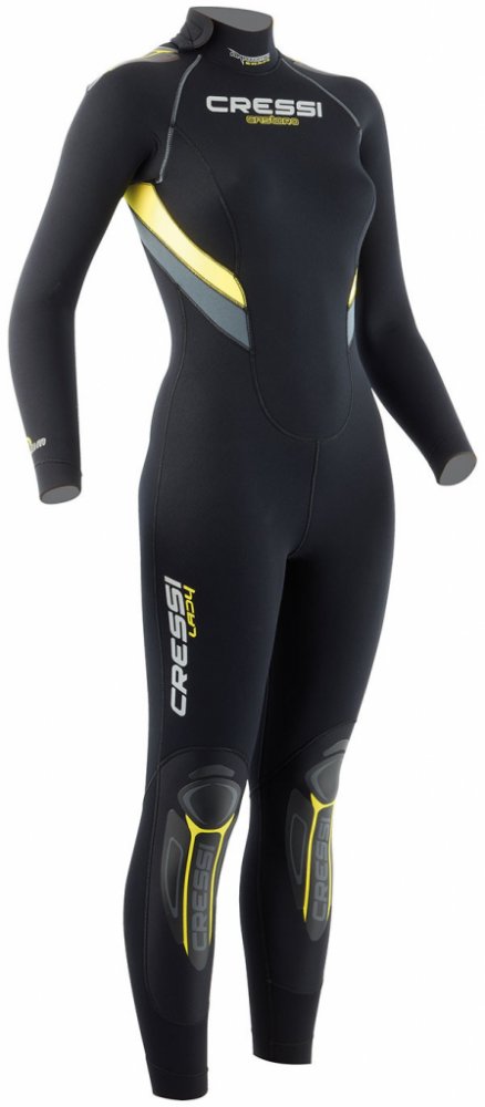 Dámsky potápěčský oblek, vyrobený z odolného 5 mm elastického neoprenu, vhodná na potápění do mírných vod. Disponuje výbornými termoizolačními schopnostmi, dvojitým lemováním a anatomicky tvarovaným lemem. Oblek je anatomicky tvarovaný, na zadní straně opatřen YKK zipem, pod kterým je podšívka k minimalizaci protékání vody. Na kotnících a zápěstích jsou manžety s těsnící funkcí, vyrobené z 2 mm Aquastop neoprenu. Vnitřní strany manžet jsou z neoprenu Metall. V oblasti kolen se nacházejí vložky Powertex, které zvyšují odolnost neoprenu a chrání ho proti oděru. Velikost:M/3