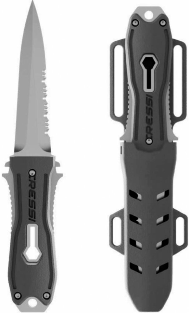 Tento víceúčelový nůž na potápění a podmořský rybolov je vyrobený z vysoce kvalitní nerezové oceli a má mimořádně ostrou čepel. Podmořští lovci jistě ocení uvolňovač šípů integrovaný do střenky nože, který ulehčuje vytahování harpunových šípů. Potápěčský nůž, vyrobený v Itálii. Čepel a střenka z martenzitické nerezové oceli w 1. 14116, tvrdost 55/56 HRC.|Otvor ve střence nože slouží k uvolnění zaseklého šípu po výstřelu. Můžete jej použít i k narovnání ohnutého šípu.|Díky speciálnímu mechanickému systému lze nůž pod vodou jednou rukou rychle vyjmout z pouzdra. Dvě tlačítka na bocích střenky umožňují zajistit nůž v pouzdře a vyjmout ho z něj jediným pohybem.|Celková délka: 21 cm (8,26").
