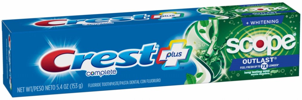 Oblíbená zubní pasta Crest Scope Outlast COMPLETE s "příchutí" Long Lasting Mint (dlouhotrvajíci svěží mentol) využíva system zložek nazvaný EXTRA WHITE Plus na to, aby zuby nejenom chránila, ale aby přinášela taky šetrné bělící účinky.