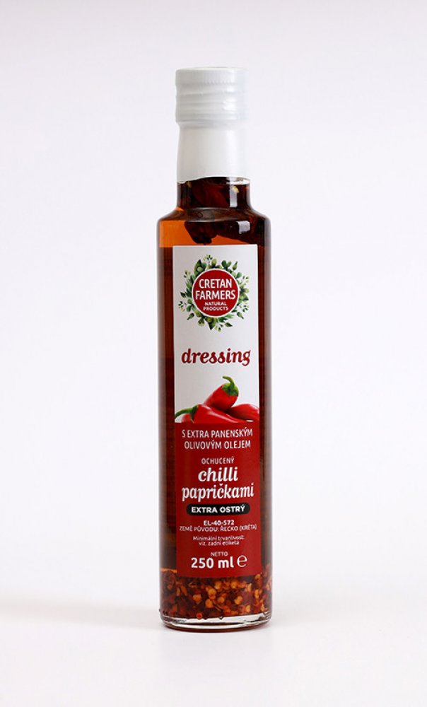 Ideální spojení vysoce kvalitního, extra panenského olivového oleje z Kréty s drcenými, ostrými chilli papričkami (RED Habanero, 450.000 jednotek) z vlastní produkce krétské rodinné farmy CRETAN FARMERS, oceníte ve studené kuchyni jako salátový dressing, nebo při marinování různých druhů masa.
