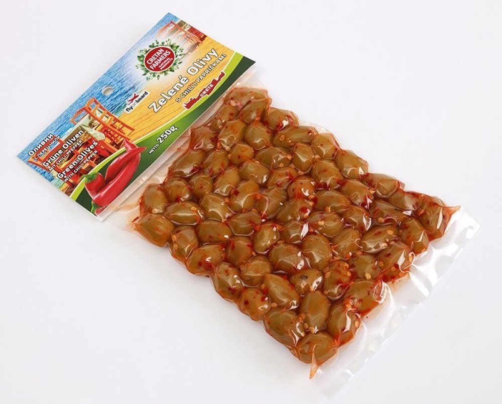 CRETAN FARMERS Olivy řecké zelené Chilli papričky 250 g