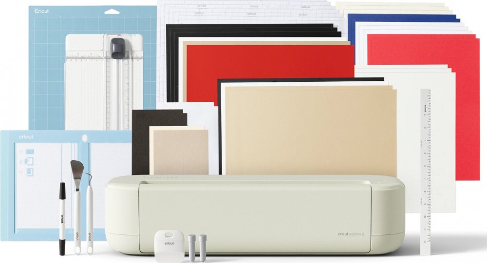 Řezací plotr Cricut Explore™ 5 Essential Bundle (Cream)Cricut Explore 5 Essential Bundle je inteligentní řezací plotr nové generace se šířkou řezu 12" (30,5 cm), který zvládá rychlé a přesné vyřezávání projektů z více než 100 oblíbených materiálů – včetně vinylu, nažehlovacích fólií, kartonu i tisknutelných materiálů. Kromě řezání umí také psát, kreslit, rýhovat i fóliovat (dle použitého nástroje)...