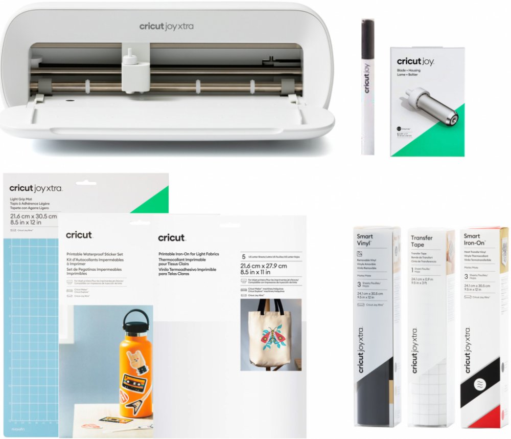 Řezací plotr Cricut JOY XTRA, je skvělý pomocník pro řezání samolepek, nažehlovaček na textil, šablon, řezání z papíru a mnoha dalších materiálů. Je ovládán pomocí softwaru, který je k plotru dodáván zdarma. Umožňuje řezání "skrz" na řezací podložce např. papíru, ale i řezání z role folie. Bude skvělým pomocníkem pro vaše vlastní projekty.