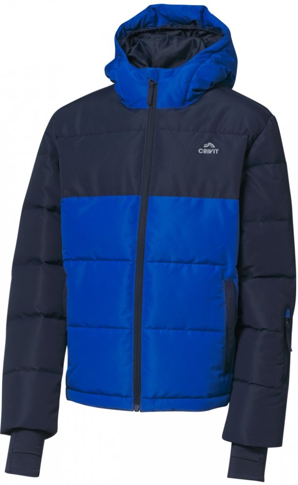 Crivit Chlapecká lyžařská bunda Vlastnosti Voděodpudivý svrchní materiál díky úpravě Bionic-Finish® ECO Reí ozdobné prvky Celopropínací zip s ochranou brady Kapsa na skipas na rukávu Kapuce se stahovací šňůrkou a kšiltem Manžety s otvorem na palec Boční kapsy na zip a praktická vnitřní kapsa Prodloužený zadní díl Se sněžným páskem S vysoce kvalitním; recyklovaným zipem značky YKK modrá/limetková; ...