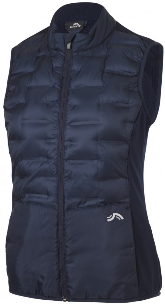 Crivit Dámská funkční vesta Vlastnosti Vyrobena z recyklovaného materiálu Elastické vsadky na zádech a po stranách pro optimální volnost při pohybu Vodu odpuzující vrchní materiál díky povrchové úpravě Bionic-Finish ® ECO Postranní kapsy na zip Přiléhavý střih Reí ozdobné prvky Kvalitní; recyklovaný; značkový zip YKK Skvěle sedí a drží tvar díky značce Lycra ® Vlastnosti výrobku tabletd Barva: nav...