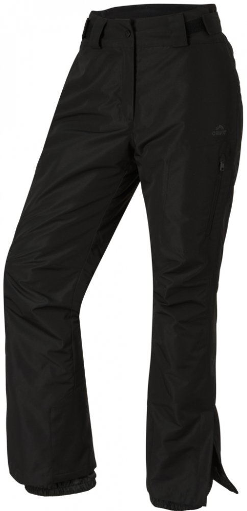 Crivit Dámské lyžařské kalhoty Vlastnosti Prodyšné; větru- a voděodolné; se zavařenými hlavními švy; vodní sloupec vrchního materiálu: 3 000 mm Vyrobeny z recyklovaného materiálu Vodu odpuzující vrchní materiál díky provedení Bionic-Finish ® ECO Na šířku nastavitelný; částečně pružný pas se zvýšenou ochranou ledvin Se zapínáním na háček a očko, patentním knoflíkem a zipem Postranní kapsa na zip na...