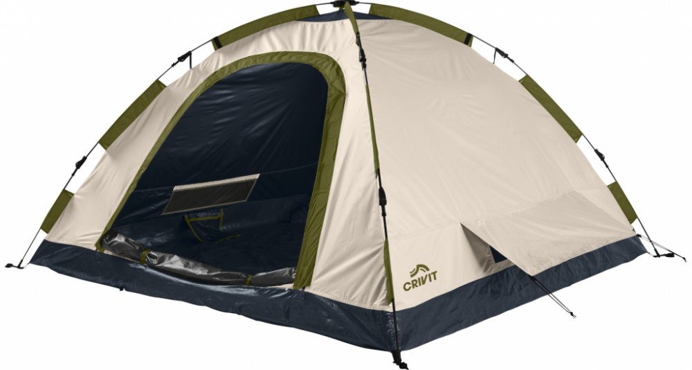 Crivit Kempinkový stan Easy Set-Up pro 3 osoby Vlastnosti Vyrobeno z recyklovatelného materiálu Nabízí místo pro 3 osoby Mimořádně lehký a kompaktní Montážní systém pro snadné a velmi rychlé postavení a složení Dveře s praktickými kloubovými uzávěry Vodoodpudivý a odolný proti UV záření UV 801 UPF 30 Větrací otvory pro lepší cirkulaci vzduchu Praktické vnitřní kapsy Charakteristika produktu tablet...