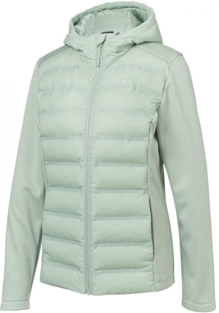 Crivit® Dámská hybridní bunda Vlastnosti Vyrobená z recyklovaného materiálu Vodoodpudivý vrchní materiál díky provedení Bionic Finish® ECO Prošívaná část bundy je větruodolná Elastický materiál pro větší komfort při nošení Průběžný zip s ochranou brady Postranní kapsy Kvalitní; recyklovaný zip značky YKK Charakteristika produktu tabletd Barva: mintová; černá Vzor: ne Detaily: postranní kapsy, průb...