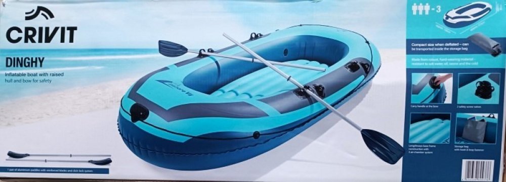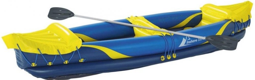 Rozměry (nafouknutý): kajak: cca 325 x 91 x 46 cm (d x š x v); dvojité pádlo: délka: cca 220 cm Připustné užitečné zatížení: 160 kg (vhodné pro 2 dospélé osoby) Vlastní váha: cca 7 kg Návod k použití přilożen Na používání v chránených vodách blízko pobřeži do vzdálenosti 300 m od břehu. Na jizdy v chránéných vodách blizko pobřeži, v malých zátokách, na malých jzerech, úzkých řekách a kanálech Odpovidá normé ISO 6185-1, kategorie IlI, typ B Dvojité pádio podle EN16083: 2012 provoz při koupání
