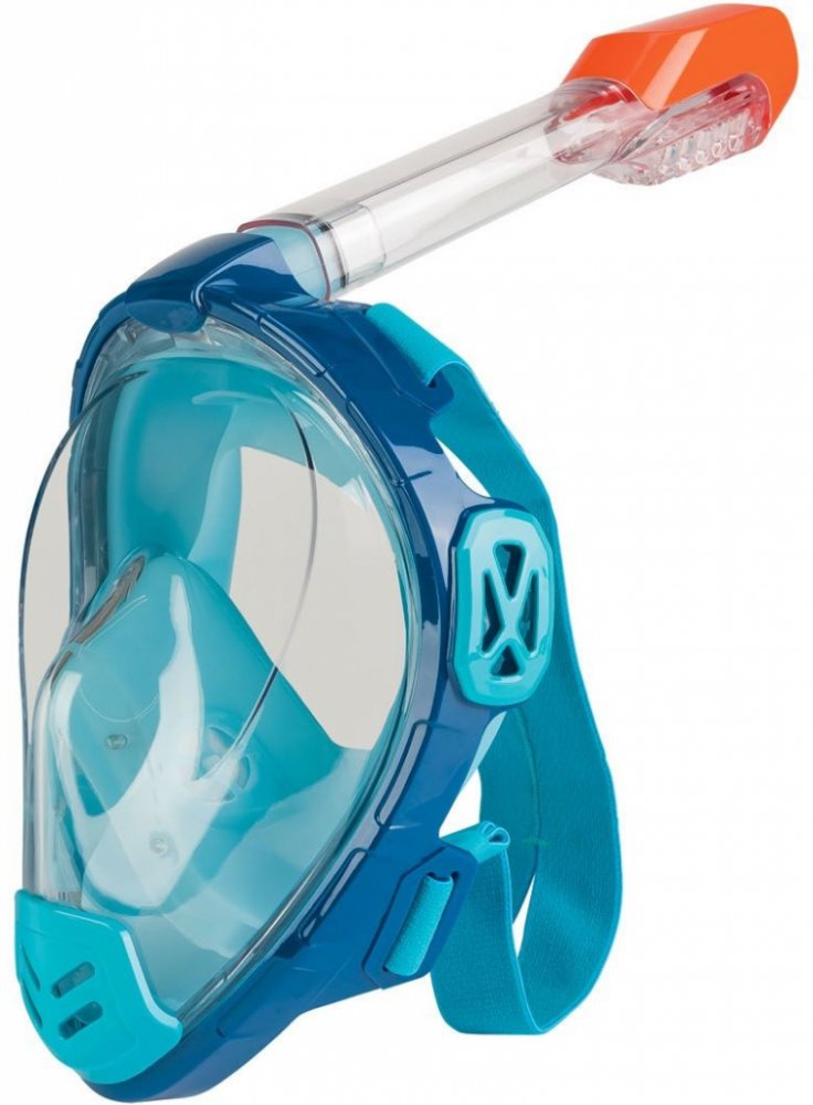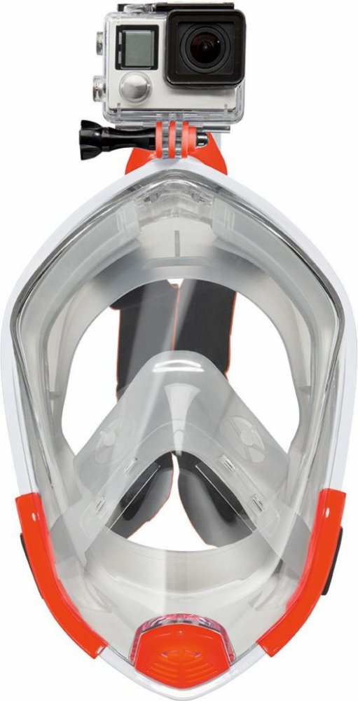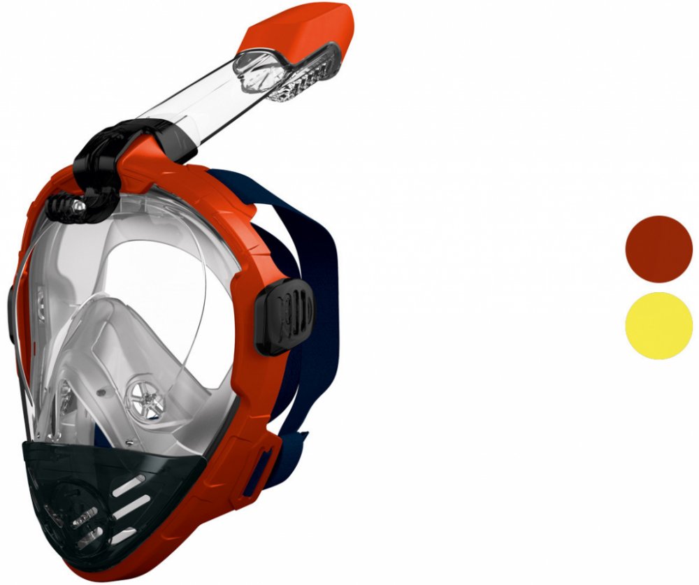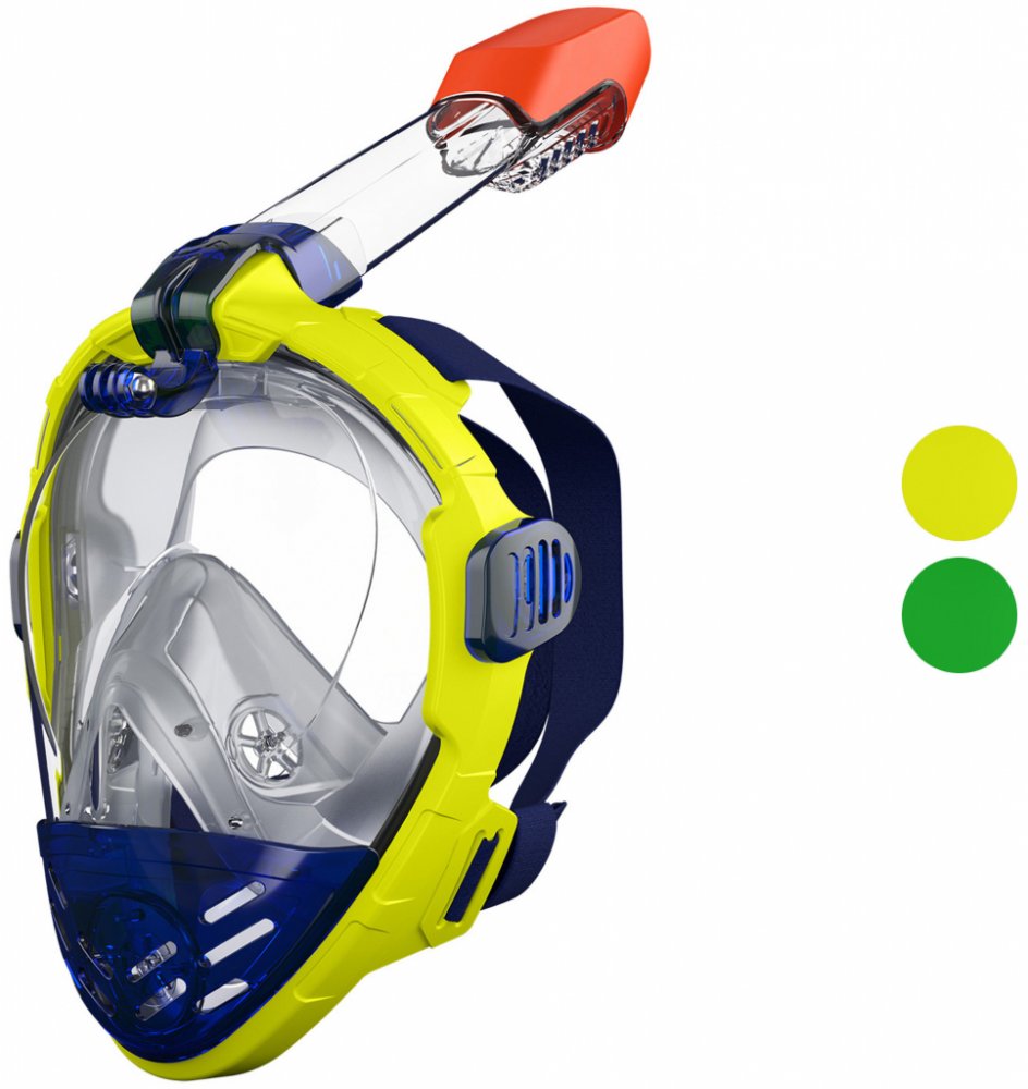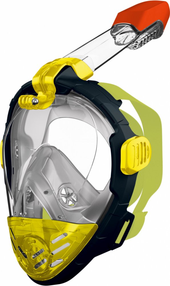 Crivit Maska na šnorchlování Inovativní technika pro volné dýchání ústy a nosem Panoramatické celoobličejové sklo: extra široké zorné pole pro větší zážitek při šnorchlování Cirkulace vzduchu zabraňuje zamlžení skla Dry Top šnorchl zabraňuje vniknutí vody dovnitř při plavání na hladině Integrovaný držák na kameru Měkké těsnění na obličeji a elastický pásek Easy-Fit pro snadné nasazení masky pro po...