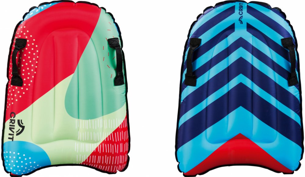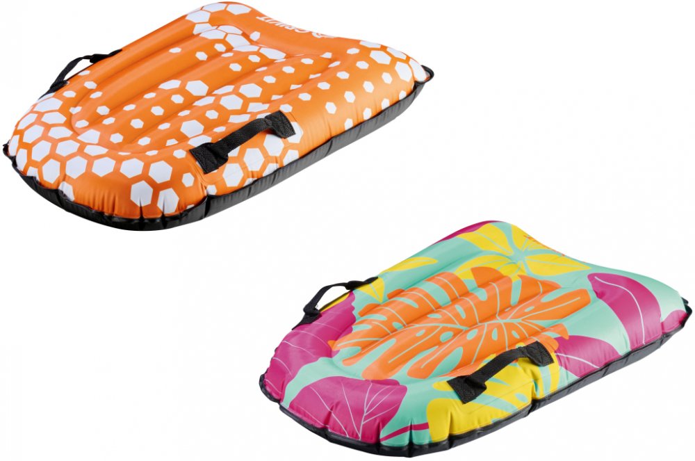 Crivit Nafukovací bodyboard Pro surfování vleže Základní model pro první zkušenosti s bodyboardem Nafukovací – kompaktní velikost balení pro snadnou přepravu 2 vzduchové komory pro zvýšenou bezpečnost Vynikající skluzové vlastnosti díky polstrované kluzné ploše Vykrojená konstrukce v zadní části pro dobré ovládání 2 ergonomická držadla 2 rychlovypouštěcí ventily pro snadné napouštění a vypouštění vzduchu Doporučený věk: pro děti od 4 do 8 let Max. nosnost: 40 kg Pro vlny nižší než 1 m Rozměry cca 70 x 50 x 12 cm d x š x v Hmotnost cca 450 g