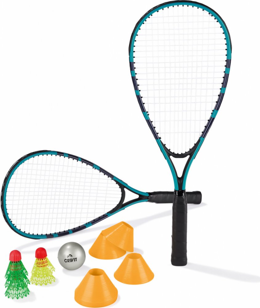 Kompletní sada pro 2 hráče – ideální pro začátečníky i pokročilé Kombinuje rychlost a požitek hry ze squashe, badmintonu a tenisu 2 pevné a lehké hliníkové rakety se zesíleným rámem 5x péřový míček Rapid Ball odolný proti větru (2x pro začátečníky, 3x pro pokročilé) pro různé rychlosti hry a vzdálenosti S odolným nylonovým výpletem a neklouzavým, měkkým páskem na rukojeti 8x značka na vyznačení po...
