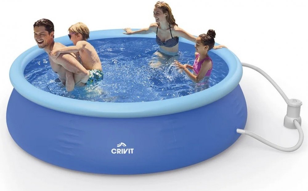 Náš bazén s nafukovacím prstencem Crivit Tenerife nabízí skvělý poměr ceny a kvality. S maximálním objemem vody 2 074 litrů poskytuje dostatek prostoru pro zábavu celé rodiny. Navíc je součástí balení vše, co potřebujete pro rychlé zprovoznění – od filtračního čerpadla po samolepicí opravné záplaty.