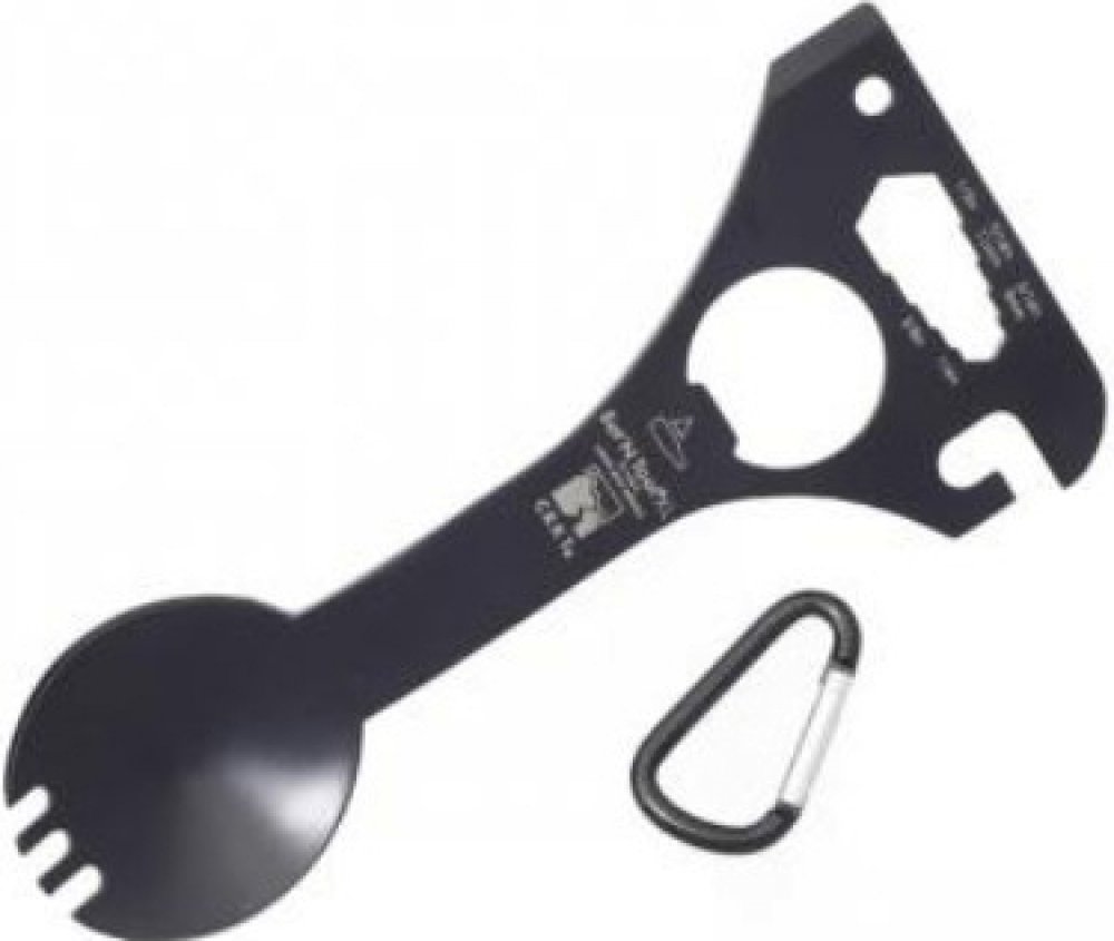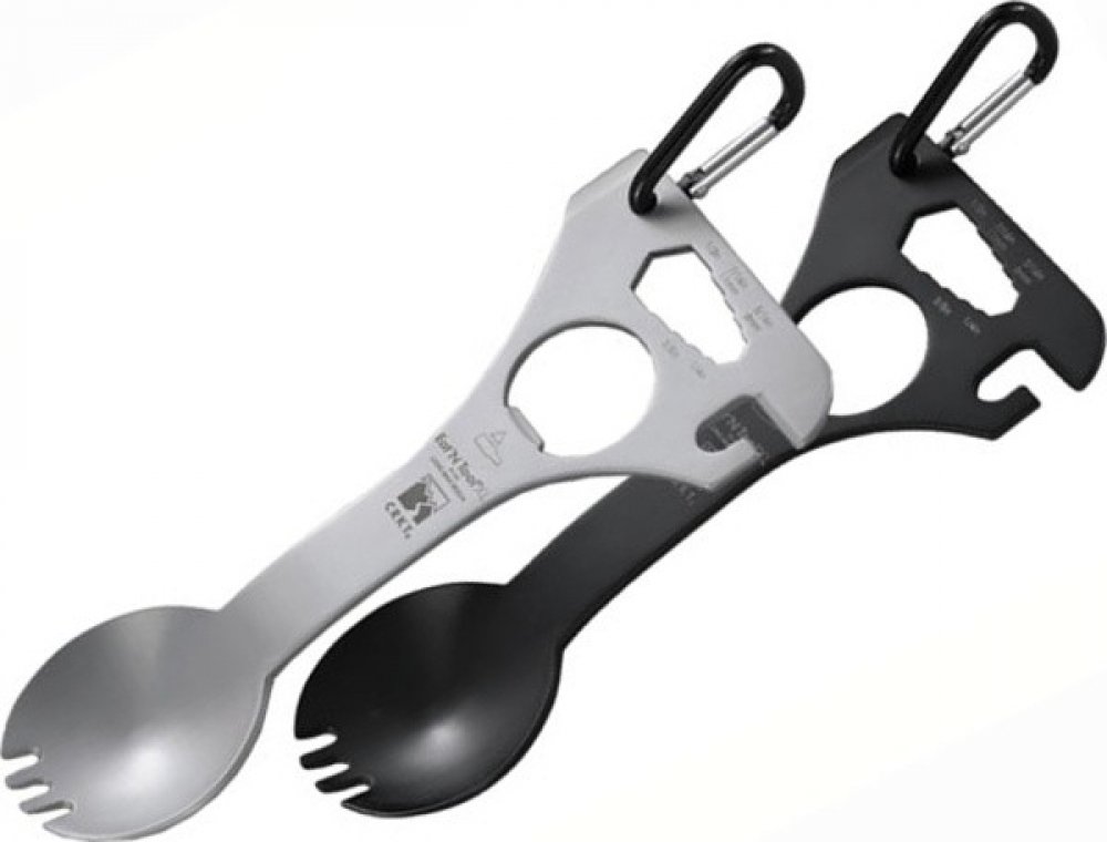 Kombinovaný příbor EAT'N TOOL v sobě spojuje několik užitečných nástrojů. V první řadě je spork, tedy lžíce a vidlička v jednom. Mezi dalšími vychytávkami najdeme otvírák na láhve, otvírák na konzervy, šroubovák, a otvory na matice nebo šestihranné šrouby. Nástroj je vybaven malou karabinkou pro uchycení na oblečení nebo výbavě.