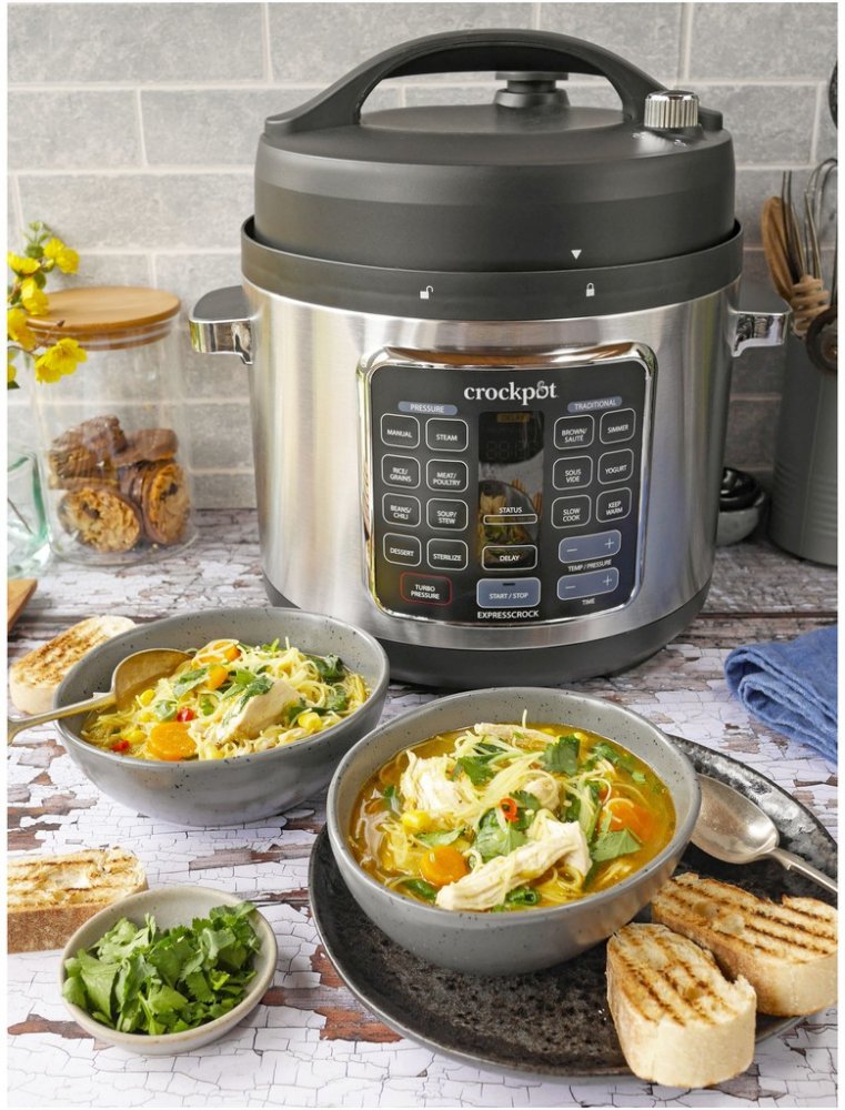 CrockPot CSC062X - podrobné informace: Pusťte se do přípravy nejrůznějších druhů pokrmů. Multifunkční hrnec CrockPot CSC062X nabízí objem 5,6 litrů a díky tomu se hodí pro celou rodinu. Vybrat si můžete ze 12 automatických programů, mezi které patří například vaření v páře, opékání, program pro vaření rýže a obilovin, přípravu jogurtů, sous-vide, sterilizace, při mírném varu nebo pomalé vaření. Prémiové kolečko pro uvolnění páry umožňuje přední přístup pro snadné uvolnění páry do zásobníku na zadní straně. Na přehledném displeji se vám bude zobrazovat čas zbývající do konce vaření. Příprava bez tuku a olejeS tímto multifunkčním hrncem si budete moct užívat možnost přípravy jídel bez tuku a oleje. Snadno proto uvaříte všechny druhy polévek, ryby, maso, rýži a další pokrmy. Nastavit si dále můžete časovač až na 20 hodin nebo využít funkci odloženého startu. Hrnec tedy například může připravovat večeři, zatímco jste v práci. Multifunkční hrnec CrockPot CSC062X nabízí objem 5,6 litrů a dík...