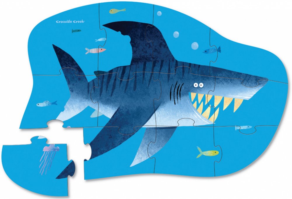 Je ten žralok naozaj takým hrôzostrašne vyzerajúcim zvieraťom alebo sú to len povery? Zistiť to môžete po zložení 12-dielneho mini puzzle s veľkými dielikmi, výraznými farbami a krásnou ilustráciou. Puzzle ako také rozvíja detskú fantáziu a predstavivosť, sústredenie i pamäť, ale aj úchop, jemnú motoriku a koordináciu oko-ruka. Odporúčaný vek: 2 roky a viac Crocodile Creek je ekologická americká značka, ktorá spolupracuje s dizajnérmi a umelcami po celom svete. Všetky motívy sú tlačené na odolnej recyklovanej lepenke s použitím sójových atramentov bezpečných pre všetky deti.