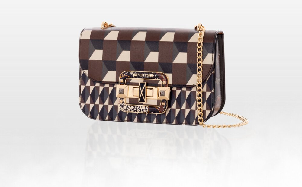 Cromia IT Deco je dámská mini bag kabelka, která spojuje moderní italský design a luxusní řemeslné zpracování. Vyrobena je z pravé hladké telecí kůže (Vitello Liscio Stampato) v mandlově-hnědém odstínu s výrazným geometrickým vzorem. Tento vzor dodává kabelce dynamický a jedinečný charakter, díky kterému okamžitě zaujme.