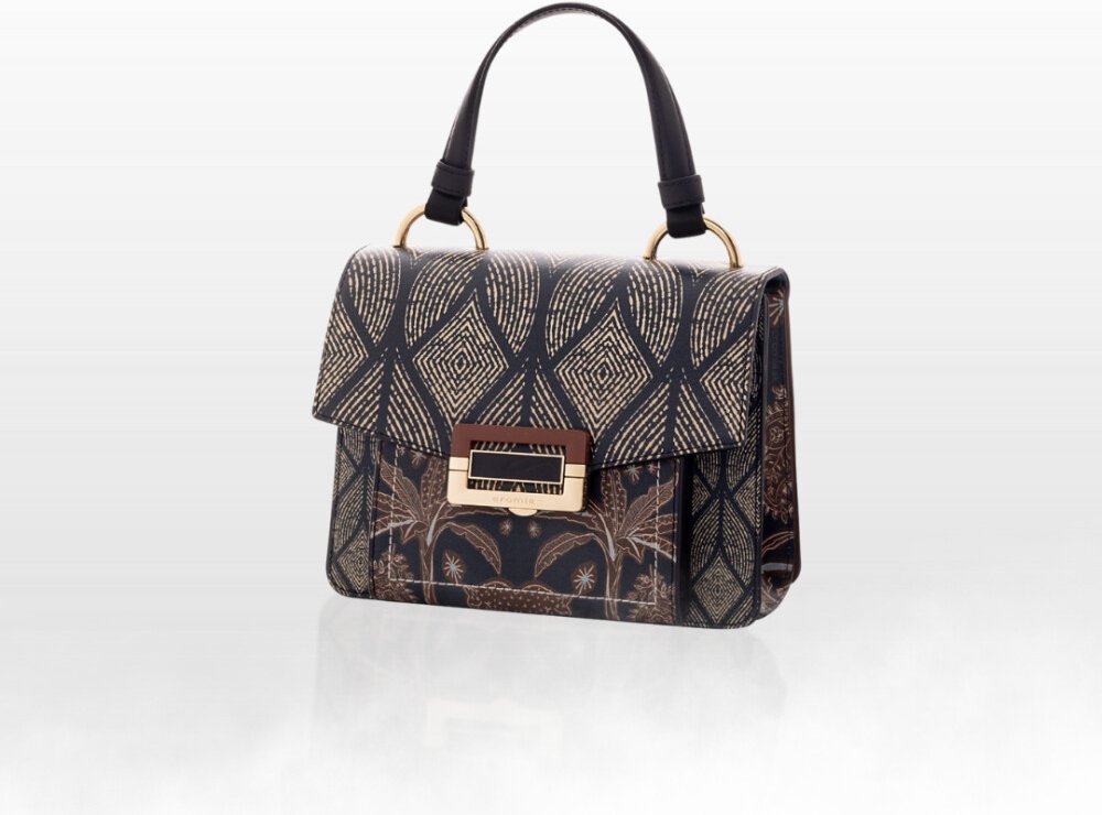 Přední části dominuje kovové a pryskyřičné zapínání s glazovanou středovou částí, které dodává kabelce jedinečný a sofistikovaný charakter. Světlezlaté kovové doplňky podtrhují luxusní vzhled.