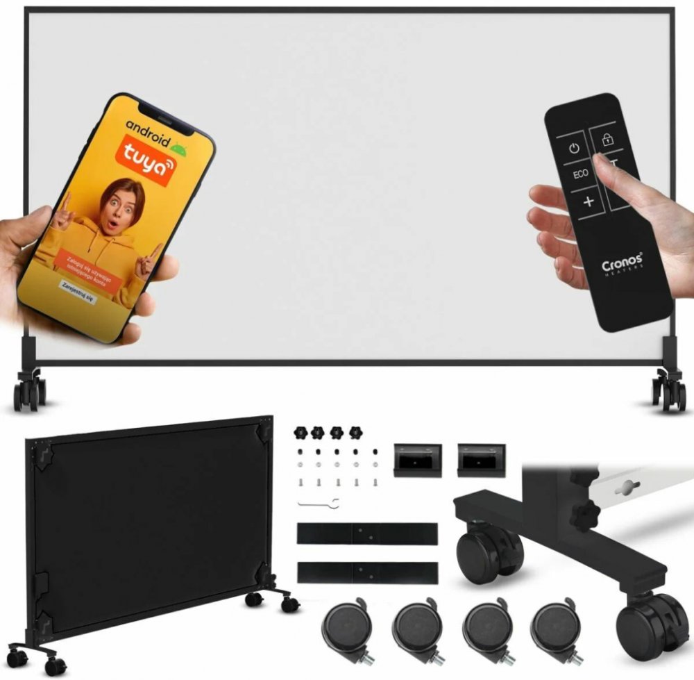 Cronos Carbon 1000 W nabízí tichý provoz, nízkou spotřebu a jednoduchou instalaci. Můžete jej namontovat na stěnu, strop nebo jej umístit na podlahu pomocí dodávaných nožiček. S výkonem 1000 W spolehlivě vytopí prostor o velikosti až 23 m².