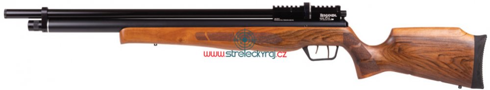 Crosman Benjamin Marauder ráže 4,5 mm je PCP vzduchovka tradiční severoamerické značky, která vyniká vysokou kvalitou zpracování a řadí se mezi nejpřesnější a zároveň i nejtišší zbraně své kategorie. Vzduchovka vhodná pro přesnou střelbu na terč má drážkovanou hlaveň o délce 508 mm. Spoušťový mechanismus má dvoustupňové nastavení. Zásobník na 10 diabolek ráže 4,5 mm se automaticky otáčí během natahování vzduchovky. Zásobník stlačeného vzduchu, jemuž se říka kartuše, má u modelu Marauder objem 215 kubických centimetrů. Maximální plnicí tlak je 200 barů a aktuální tlak lze kontrolovat na manometru usazeném ve spodní části předpažbí před lučíkem. Plnění kartuše lze provádět z větší lahve nebo pumpou pro tlakování PCP vzduchovek. Plnicí ventil je v přední části zbraně pod krytkou a je přizpůsoben pro použití rychlospojky, ale ta není součástí balení. V případě potřeby lze rychlospojku objednat v sekci doplňkvé zboží pod tímto popisem. Pro plnění z lahve je lepší využít hadici s vlastním manometrem a pojistným ventilem, protože rozpojování konektoru a rychlospojky je tak bezpečnější. Mechanismus modelu Marauder je usazen do dřevěné pažby s polymerovou stavitelnou lícnicí. Pažba nese dva čepy, které lze využít pro upevnění popruhu. Tvar předpažbí i pažby připomíná ostrou zbraň a poskytuje přirozenou pozici držení pro praváky i leváky. Crosman Benjamin Marauder nemá klasická mířidla, ale i s ohledem na jeho schopnosti se počítá s použitím puškohledu či kolimátoru, a proto disponuje 11 mm lištou pro montáž optiky. Pojistka proti náhodnému výstřelu je ovládána páčkou umístěnou v lučíku před spouští. Parametry: Ráže: 4,5 mm Střelivo: olověné diabolo Kapacita zásobníku: 10 diabolek Pohon: PCP Energie udávaná výrobcem: do 28 J Úsťová rychlost: 335 m/s Délka hlavně: 508 mm Celková délka: 1080 mm Bezpečnostní pojistka: ano Obsah balení: Vzduchovka Benjamin Marauder wood ráže 4,5 mm Zásobník Crosman Marauder 4,5 mm Návod se záručním listem Kartonová krabice