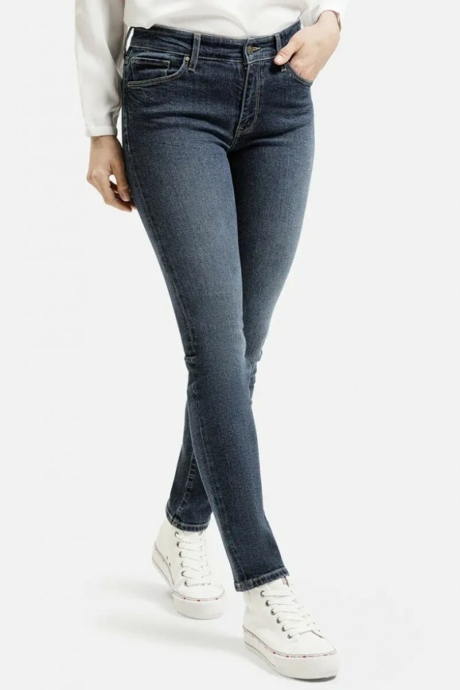 Dámské džíny Cross tmavého odstínu modré barvy s lehkým šoupáním v dobře padnoucím střihu ANYA. Tyto stylové jeans dokonale kopírují tvar dámské postavy a jsou oblíbené především díky úzkým nohavicím až ke kotníkům a vysokému pasu. Díky příměsi elastanu jsou kalhoty velmi pohodlné.