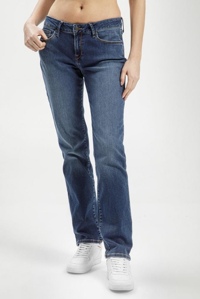 Dámské džíny Cross středního odstínu modré barvy s lehkým šoupáním v klasickém pohodlném střihu ROSE. Tyto stylové jeans jsou oblíbené především díky rovným nohavicím a vysokému pasu. Díky příměsi elastanu jsou kalhoty velmi příjemné při nošení.