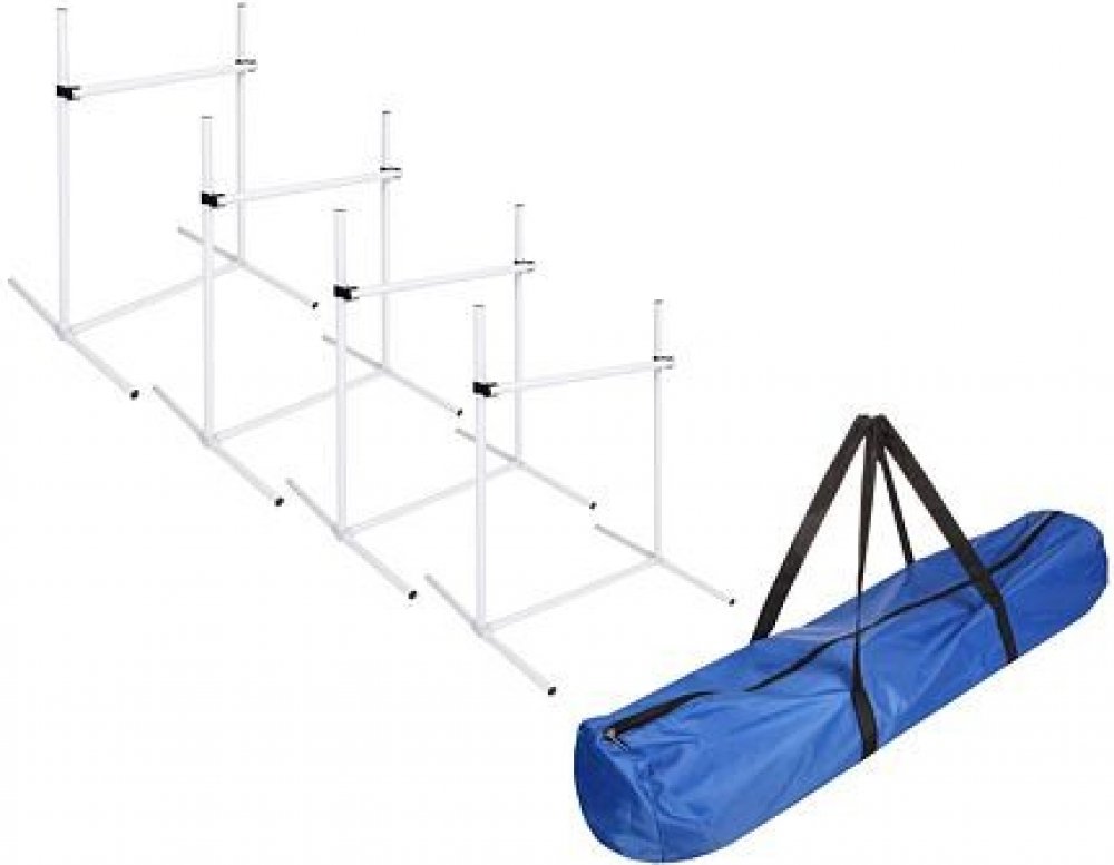 Sada agility tyčí Merco Crossbar Set 4 zajistí efektní trénink pro vašeho čtyřnohého mazlíčka. Spojením plastových tyčí různých délek a s průměrem 25 mm postavíte překážkovou dráhu dle své představy. Tento set je velmi praktický a složený v polyesterové tašce pro snadné přenášení kdykoliv a kamkoliv. Díky této pomůcce připravíte mazlíčka na případné závody a dopřejete mu potřebný pohyb. Balení obsahuje: - 16x tyč 30 cm - 4x tyč 60 cm - 4x tyč 65 cm - 8x tyč 85 cm - 8x multifunkční spojka se 4 otvory - 8x spojka pro dvě tyče - materiál: plast - barva: bílá - součástí praktická taška na zip - hmotnost sady: cca 3,2 kg