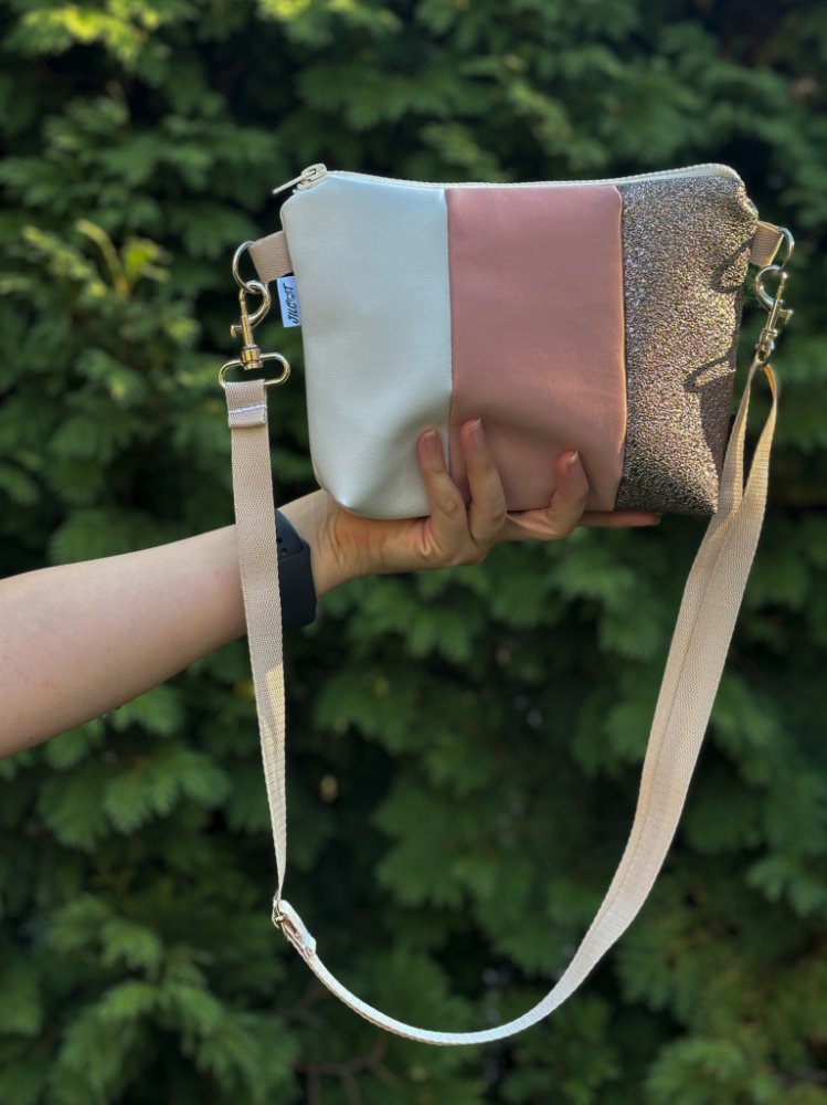 Ideální kabelka za zábavou, na svatbu nebo jen tak na procházku. Crossbody je ušité ze dvou vrstev látky (vnější část koženka, vnitřní část 100% bavlna). Díky rozšířenému dnu se sem vejde malá i velká peněženka a k tomu i klíče, kapesníčky, rtěnka a všechny drobnosti, které potřebujete mít u sebe. Nechybí ani malá kapsička na mobil. Zavírání je na zip. Součástí je popruh s nastavitelnou délkou, l...