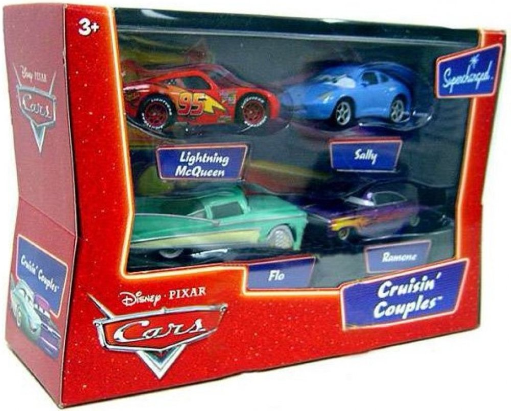 Exkluzivní sběratelský set klasických kovových modelů z filmu CARS (Auta). Jde o modely z jedné z prvních sérií CARS - SUPERCHARGED.Set obsahuje tyto modely: Sally Lightning McQueen (Blesk) Ramone Purple (Fialový Ramone) FloSally: Kovový model autíčka Sally. Přítelkyně Lightning McQueena (Blesk McQueen). Sally Carrera (známá prostě jako "Sally"), je jednou z hlavních postav filmu CARS (Auta). Jejím přítelem je Lightning McQueen (Blesk McQueen), kterému říká "Stickers" (Samolepky), protože nemá klasické přední světlomety, ale jen samolepky, které jako světlomety vypadají. Sally je právnička v Radiator Springs (Kardanová Lhota). Ona a Lightning McQueen (Blesk) jsou do sebe velkou část filmu zamilovaní. Sally už byla unavena z hektického života v Los Angeles, kde byla uznávanou a významnou advokátkou, tak se rozhodla začít znovu v malém městečku Radiator Springs (Kardanová Lhota). Vždy okouzlující, inteligentní a vtipná. Stala se městským právníkem a nejoddanějším autem usilujícím o zachování historické krásy města. Koupila Cozy Cone Motel, zrestaurovala ho do původního stavu a to není vše. Rozhodně zatím nemá v plánu s opravami městečka skončit. Má v plánu opravit celé městečko budovu po budově, jakkoli dlouho to bude trvat. Její jemné tetování je vzpomínkou na její mladá léta. I když dnes je z této své ozdoby trošku v rozpacích, slouží jí jako připomínka hektického života v Kalifornii a připomíná jí ráda, že zpomalila a "jede teď v pomalejším pruhu". Na konci filmu se Sally stane Lightningovou (Blesk) přítelkyní.Lightning McQueen (Blesk): Klasický kovový model autíčka Lightning McQueen (Blesk McQueen). Lightning McQueen (Blesk McQueen) je červený závodník sponzorovaný firnou Rust-eze Medicated Bumper Ointment ("S pouhou troškou Rust-Eze, můžete vypadat jako Blesk McQueen!"). Lightning McQueen (Blesk McQueen) má ve filmu číslo 95. Na začátku filmu jede svůj první závod Piston Cup v Nashville, Tennessee a vítězí. Zpočátku je McQueen (Blesk) na každého nepříjemný a hrubý, ale jedné noci na cestě do Los Angeles v Kalifornii se stane, že se ve spánku náhodou oddělí od svého tahače Macka poté, co čtveřice vytuněných aut - Boost, Wingo (Spojlík), Snot Rod (Smrkáč) a DJ narazí do Mackova přívěsu, což způsobí Bleskovo vypadnutí z tahače. Když se McQueen (Blesk) probudí všimne si, že Mack je pryč. Snaží se jet jak to jde, aby Macka dohonil, téměř se srazí s vlakem a nakonec nechtěně skončí v Radiator Springs (Kardanová Lhota) kde nešťastnou náhodou poškodí hlavní silnici a je zatčen šerifem, který pak řekne: "Chlapče, jsi v průšvihu." A Bleskova dobrodružství v Kardanové Lhotě začínají...Ramone Purple (Fialový Ramone):Kovový model autíčka Ramone Purple (fialový Ramone). Opravdový umělec se nebojí riskovat při hledání nových způsobů vyjádření svých názorů a pocitů a při posouvání kulturních hranic. Ramone je přesvědčen, že "tělo" každého automobilu tělo by mělo vyjadřovat pocity vozu, což je důvod, proč je pro Ramona každý den novou příležitostí k objevování nových stylů lakování překračování neomezených hranic jeho umění. Ramone je bezpochyby "nejpřevlékanějším" autíčkem v celém filmu CARS (Auta). Je majitelem lakovny (Ramone's House of Body Art) v městečku Radiator Springs (Kardanová Lhota).Flo: Kovový model autíčka Flo. Modelovým rokem Flo je 1950 a je jediná svého druhu na světě. Flo poprvé přijela do Radiator Springs (Kardanová Lhota) jako cestující Motorama girl. Mířila na západ s ostatními modelkami, když se jejímu doprovodu hned za městem zadřela převodovka. Flo a ostatní Motorama girls strávily nezapomenutelný víkend v Radiator Springs (Kardanová Lhota); nové pneumatiky od Luigiho, suvenýry od Lizzie a nový lak od Ramona. Ale když přišel čas malovat Flo, odhodil Ramone airbrush. Ne proto, že by on byl příliš dobrý na to aby ji maloval, ale proto, že ona byla příliš dobrá na to, aby byla malována. Následující den, kdy dívky odešly, Flo zůstala. Ona a Ramone byli od té doby spolu. Flo provozuje místní restauraci, Flo's V8 Café (Kavárna Flo), jedinou tradiční čerpací stanice na míle daleko, kde se ještě stále nabízí to nejlepší palivo ze všech padesáti států.Velikost modelů cca 6-9 cm (dle typu). Není vhodné pro děti do 3 let.